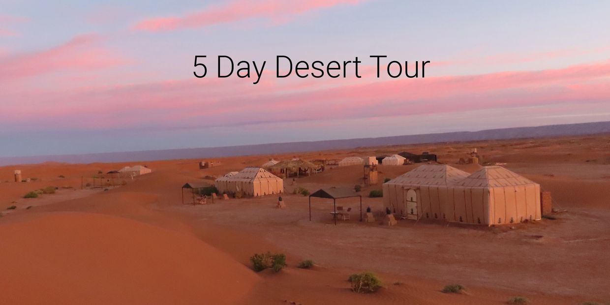 Before you start your drive toward the great dunes of Erg Chigaga you will have a chance to explore Aït Benhaddou. This is an ancient ksar, or fortified village, along the traditional trade route, and has been the set for many international films, including Gladiator and Game of Thrones. You’ll have the chance to explore this living museum as you climb to the top of the imposing hill for a commanding view of the countryside. Continue the drive through the lush villages of the Draa Valley, watered by the 1100 kilometer-long Draa river, the longest river in Morocco. The Draa Valley is the setting of glorious palm oases and ancient kasbahs all the way to Zagora and M’hamid el Ghizlane where the paved road ends. Your driver-guide will drive off-road for 2 hours through varied desert terrain to reach the camp for a sunset camel trek before dinner.